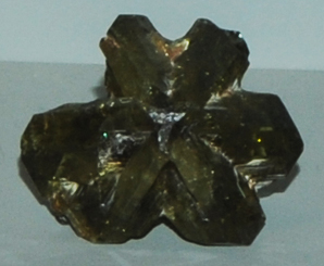 | This is another example of cyclic twinned crystals of chrysoberyl. This sample is about 8 cm across and is from Minas Gerais, Brazil.