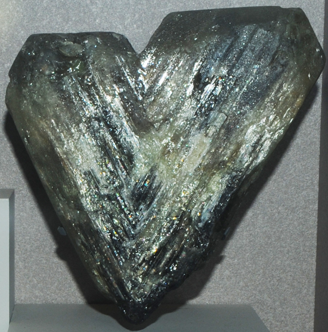 | This large twinned crystal of chrysoberyl is about 20cm across and is from Espirito Santo, Brazil.