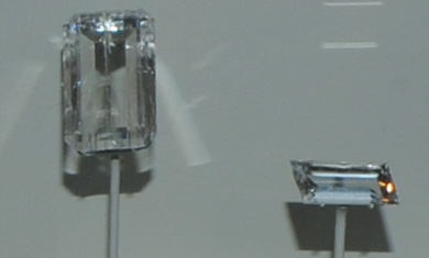The hambergite gems are 40.2 and 5.9 carats and are from Madagascar. With a Mohs hardness of 7.5, they are hard enough to make durable gems.