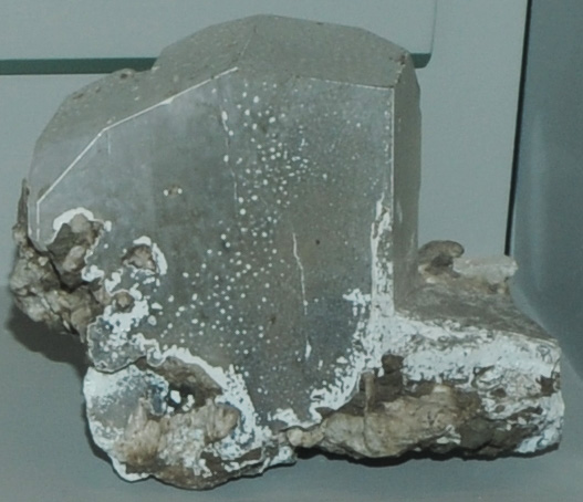 This sample of kurnakovite is displayed in the Smithsonian Museum of Natural History. Kurnakovite is a oxide mineral of boron (a borate) along with magnesium. It could be called magnesium borate. It has the composition MgB3O3(OH)5.5H2O. The sample at left is about 10 cm across and is from Boron open pit mine, Boron, California.