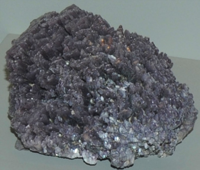 This lepidolite sample is from Minas Gerais, Brazil. It is about 12 cm across.