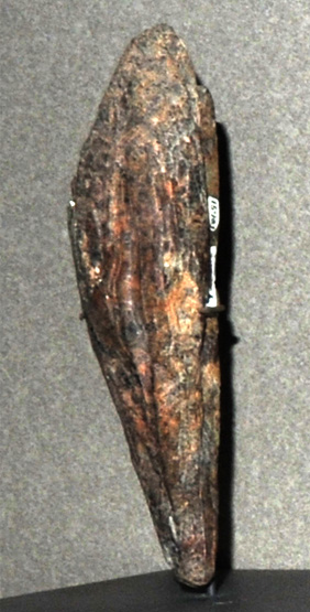This sample of thortveitite is displayed in the Smithsonian Museum of Natural History. Thortveitite is a silicate mineral of yttrium and scandium. It has the composition (Sc,Y)2Si2O7. This sample is about 5x18 cm and is from Madagascar. Named after Olaus Thortveit (1872-1917), feldspar and mineral exporter from Iveland, Norway.