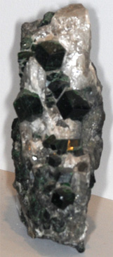 This sample of uvarovite is about 3x8 cm and is from Outokumpu, Finland. |
