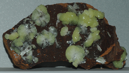 This adamite sample is from Ojuela mine, Mapimi, Durango, Mexico. It is about 28 x 21 cm.
