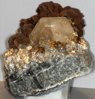 The fluorapatite sample at left is from Astillero mine, Mapimi, Durango, Mexico. It is about 12 cm across.