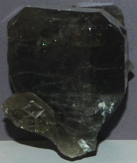 Fluorapatite (Ca5(PO4)3F) is a fluorinated calcium phospate. These samples are on display in the Smithsonian Museum of Natural History. This sample is about 7 cm across and the gem is 51.4 carats. They are from Durango, Mexico. Calcium phosphate in the form hydroxyapatite is the material from which teeth are made, and fluoridation of water is presumed to turn some of that calcium phosphate into fluorapatite. Fluorapatite is considerably harder than hydroxyapatite and is thought to provide a measure of protection against tooth decay.
