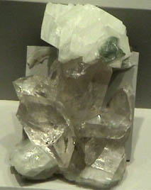 Hyalophane is silicate mineral which contains barium and has the composition (K,Ba)Al(Si,Al)3O8. The sample at left is about 12x8 cm and is from Bustovata, Bosnia and Herzegovina. These samples are displayed in the Smithsonian Museum of Natural History.