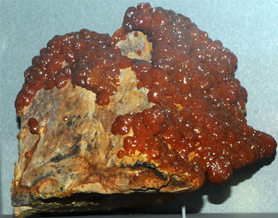 This sample is about 6x10 cm and is from Bunker Hill mine, Kellog, Idaho. This sample is on display at the Smithsonian Museum of Natural History. "This exceptional specimen was recovered from a famous lead mining district. Pyromorphite also displays shades of brown, red and yellow." |