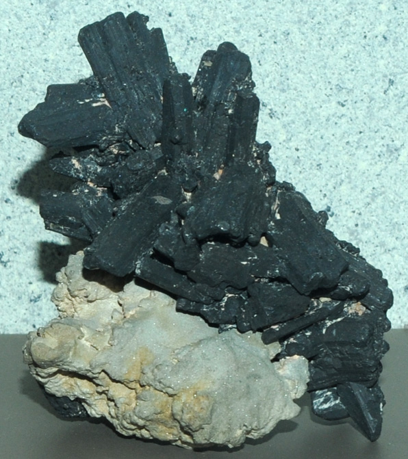This sample of Stephanite is displayed in the Smithsonian Museum of Natural History. Stephanite is an sulfide mineral of silver and antimony with the composition Ag5SbS4 . This sample is about 10x14 cm and is from Hummersfurst mine, Freiberg, Sachsen, Germany.