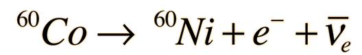 Cobalt-60The cobalt-60 isotope undergoes beta decay with a half-life of 5.272 years. ![]() Cobalt-60 decays to Nickel-60 plus an electron and an electron antineutrino. The decay is initially to a nuclear excited state of Nickel-60 from which it emits either one or two gamma ray photons to reach the ground state of the Nickel isotope.