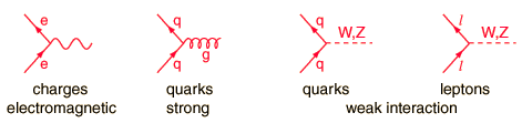 Feynman DiagramsFeynman diagrams are graphical ways to represent exchange forces. Each point at which lines come together is called a vertex, and at each vertex one may examine the conservation laws which govern particle interactions. Each vertex must conserve charge, baryon number and lepton number.