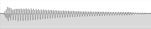 The illustration above shows the attack and decay of a plucked guitar string. The plucking action gives it a sudden attack characterized by a rapid rise to its peak amplitude. The decay is long and gradual by comparison. The ear is sensitive to these attack and decay rates and may be able to use them to identify the instrument producing the sound.